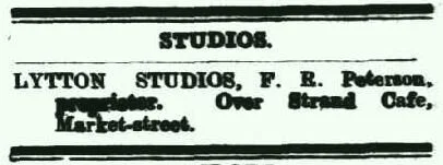 From 1922 - 1929 as Rembrandt Studio, photographers and from 1930 - 1938 as Peterson, F R his studio was upstairs at the Princess Chambers, Market St.