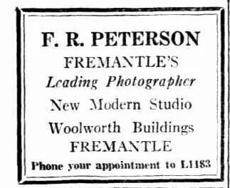 1931 A remarkable letter of appreciation was recently received by Fremantle's well known Art Photographer, F. R Peterson (next Princess Theatre) from a prominent Fremantle medical man, reading; "Many thanks for the enlargement. Both my wife and myself were delighted with it- particularly with the way you paid attention to the individual differences of the children's complexions. It is a real work of art…” (reference)