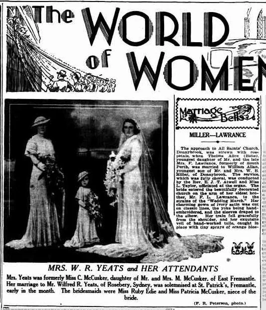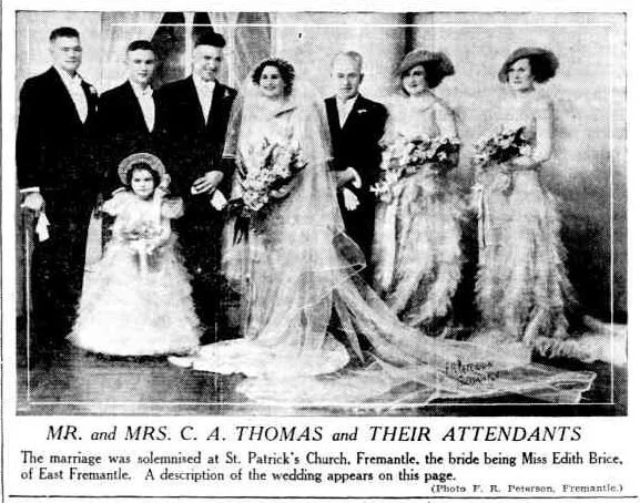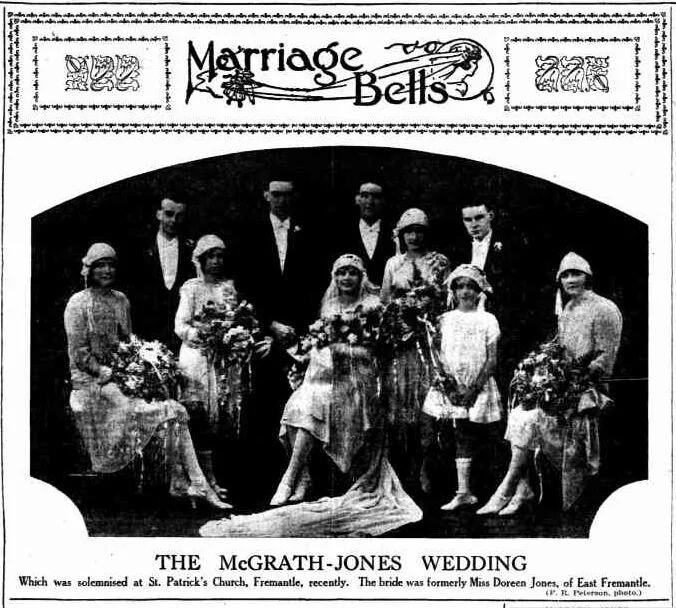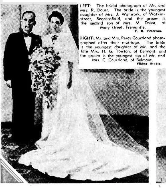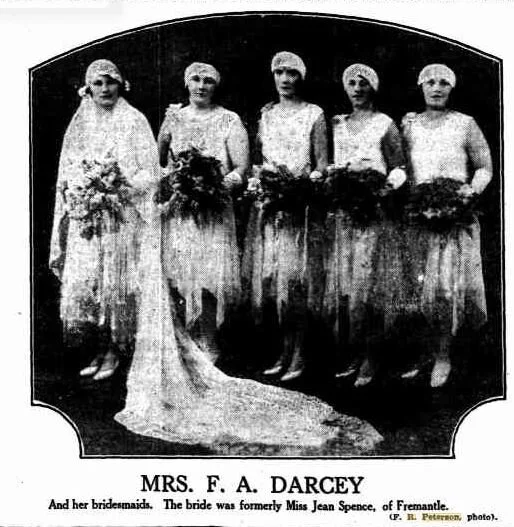 St. John's Church, Fremantle, was the scene of one of the prettiest and smartest weddings witnessed in Fremantle for some time, when on March 29, Rita Spurr, second daughter of Mr, and Mrs. F. W. Spurr, of East Fremantle, and Mr. Frank R. Peterson, of Fremantle, were the contracting parties… (reference)
